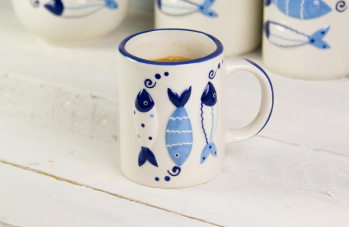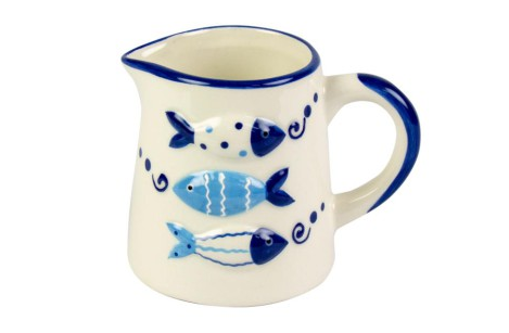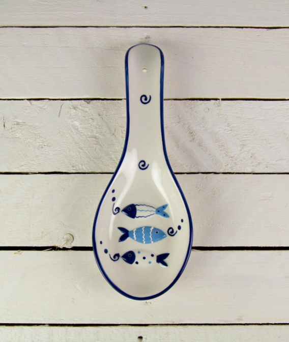 Nauticalia's Fish Tales ceramic kitchenware collection has a tactile raised design, glazed in blue and white for a fresh, cheerful feel. Microwave safe.