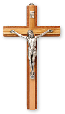 Beech Wood Crucifix Metal Inlaid - 8 inch