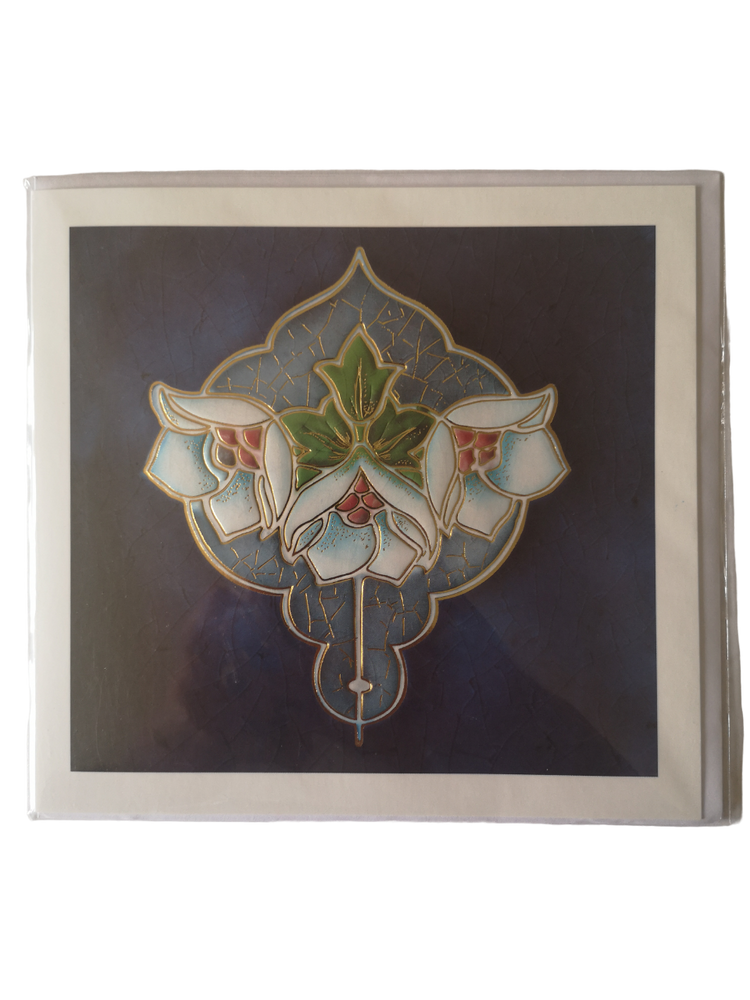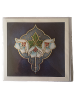 A machine impressed tile in low relief decorated in translucent white, turquoise, red and green glazes on a deep turqoiuse ground. Early 20th Century.