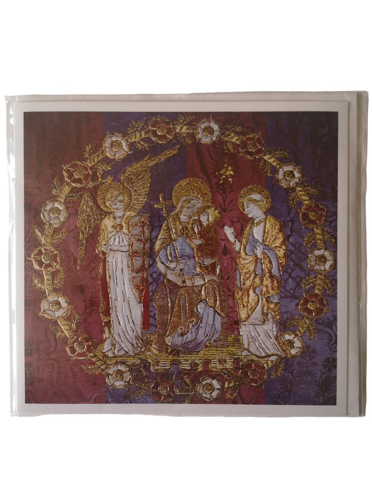 A banner in Malvern Priory by St Mary's Convent Embroidery School, Wantage in 1910.